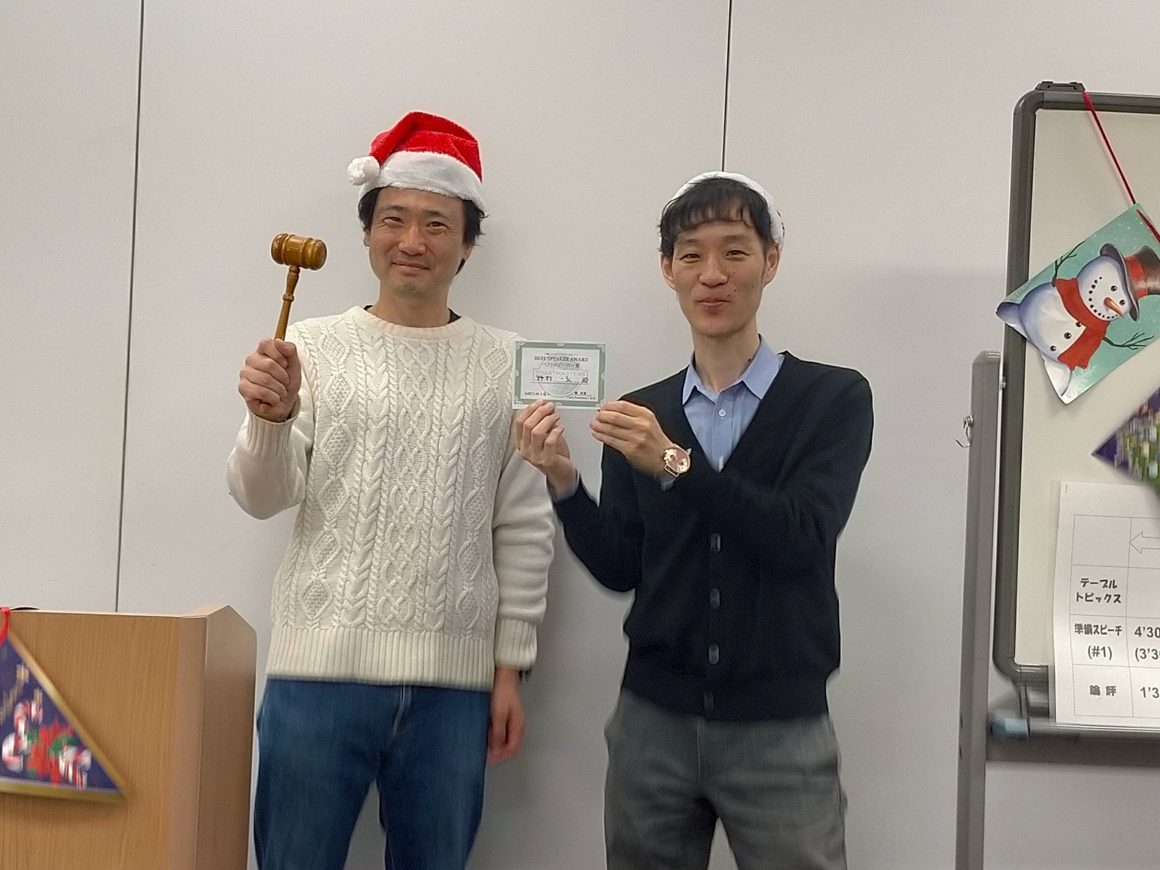 本日は年末ということで仕事などが忙しいけれどめげずにやり切ろうという気持ちをこめ、「最後まで走り抜こう」というテーマで例会を進めました。
